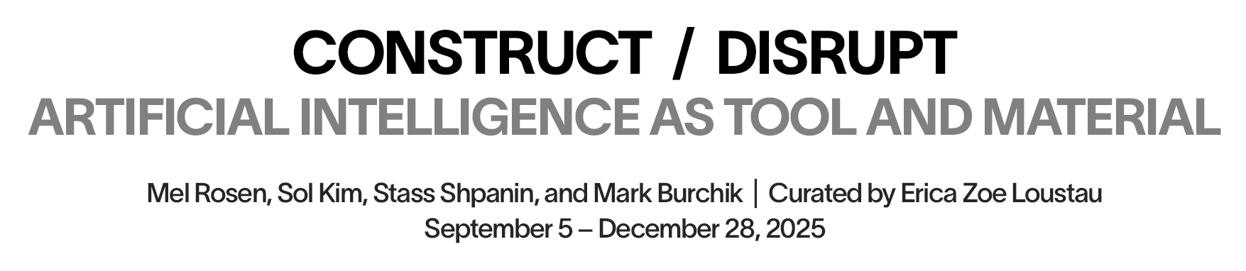 Together, the artists in Construct | Disrupt invite us to consider how we construct meaning in a world where the archive is no longer fixed and where the image can be endlessly generated. The work of these artists does not offer answers, but rather asks: What do we trust? What do we remember? And how do we decide what is worth believing?